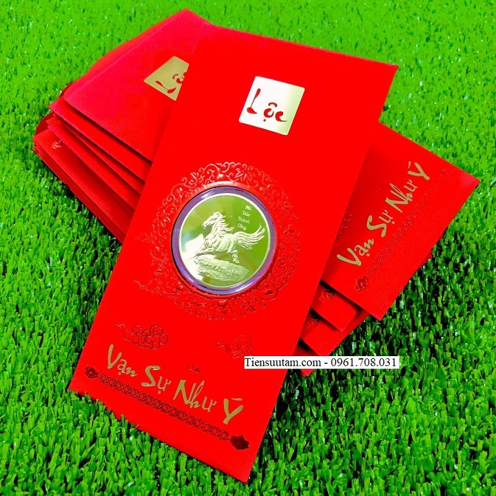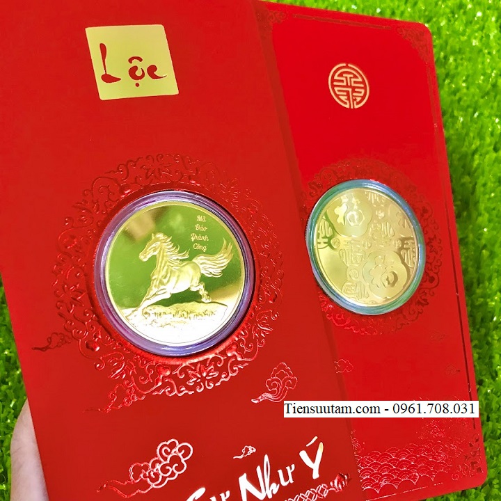 Đặc điểm nổi bật: Bao Lì Xì Lộc Mã Đáo Thành Công gồm một bao lì xì đỏ đi kèm với mặt xu hình chú Ngựa đang phi nước đại ở giữa, được ốp nhựa arylic bên ngoài. Hình ảnh Ngựa phi nước đại thường gắn liền với câu chúc " Mã Đáo Thành Công " dành cho những người làm ăn kinh doanh hay đang tiến bước trên đường quan lộ được mọi việc suôn sẻ, thuận lợi... nên Bao Lì Xì Lộc Mã Đáo Thành Công sẽ phù hợp với những người có năm tuổi tương đồng, dùng để cầu thêm may mắn, thăng tiến trong công ăn việc làm... Đồng thời xu cũng sẽ là món quà ý nghĩa dành tặng người thân và bạn bè dịp Lễ Tết...