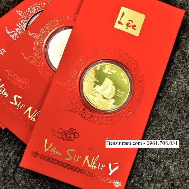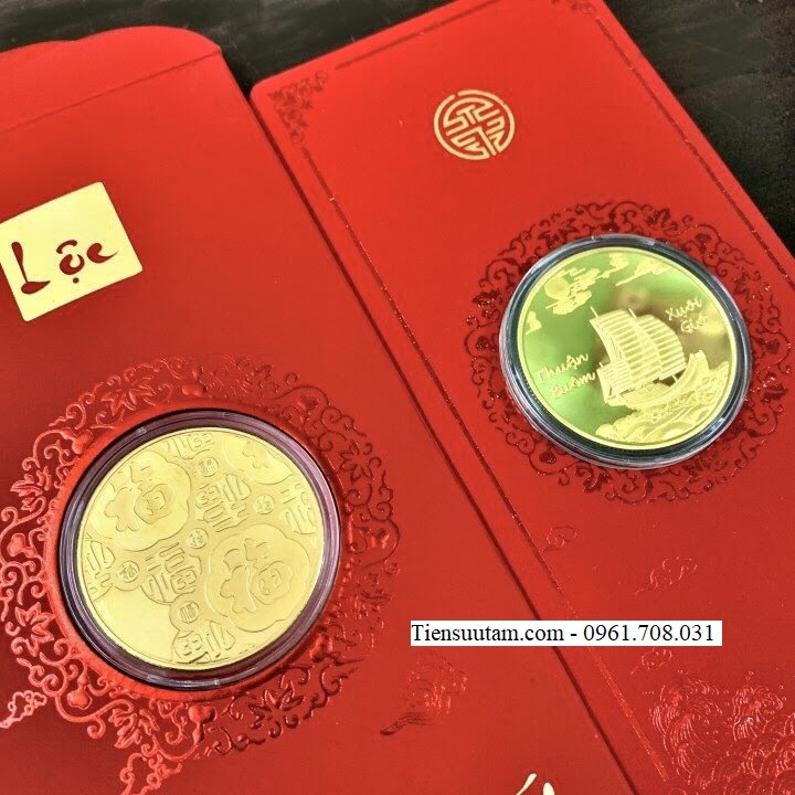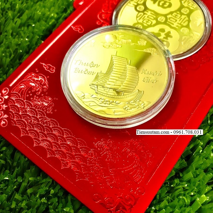 Đặc điểm nổi bật: Bao Lì Xì Lộc Thuận Buồm Xuôi Gió gồm một bao lì xì đỏ đi kèm với một đồng xu mặt trước là hình chiếc thuyền với 3 cánh buồm đang căng gió lướt trên mặt biển, xu được ốp nhựa arylic bên ngoài. Hình ảnh chiếc thuyền buồm căng gió lướt trên mặt biển thường gắn liền với câu chúc " Thuận buồm xuôi gió " dành cho những người làm ăn kinh doanh hay đang tiến bước trên đường quan lộ được mọi việc suôn sẻ, thuận lợi, phát tài phát lộc, vạn sự như ý tiền tài đầy túi.... nên Bao Lì Xì Lộc Thuận Buồm Xuôi Gió dùng để cầu thêm may mắn, thăng tiến trong công ăn việc làm... Đồng thời xu cũng sẽ là món quà ý nghĩa dành tặng người thân và bạn bè dịp Lễ Tết...