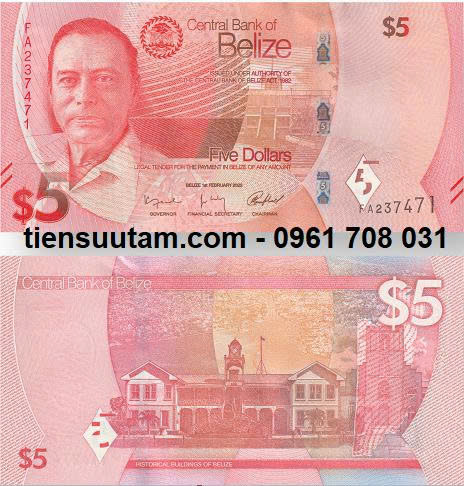 Tiền Belize 5 Dollar 2025 UNC