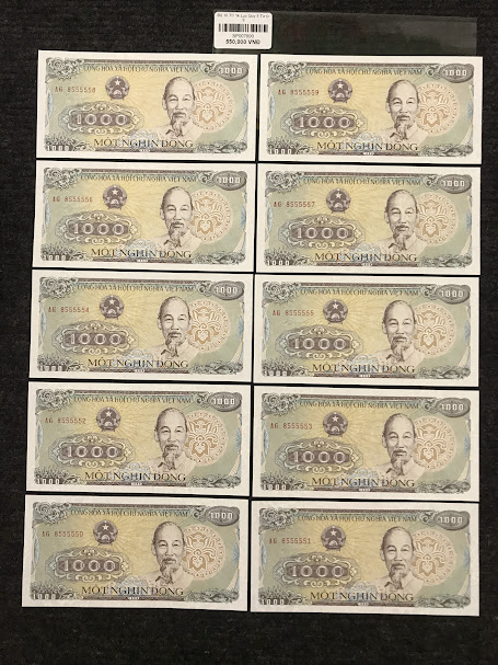 Bạn đang tìm kiếm bộ tiền seri đẹp – độc – phong thủy cực mạnh? Đừng bỏ lỡ Bộ 10 Tờ 1.000 VNĐ Lục Quý 1 – 5 – 6 – 7, mỗi tờ có seri gồm 6 số giống nhau đứng trước (ví dụ: 111111, 555555…) và kết thúc bằng chữ số từ 0 đến 9