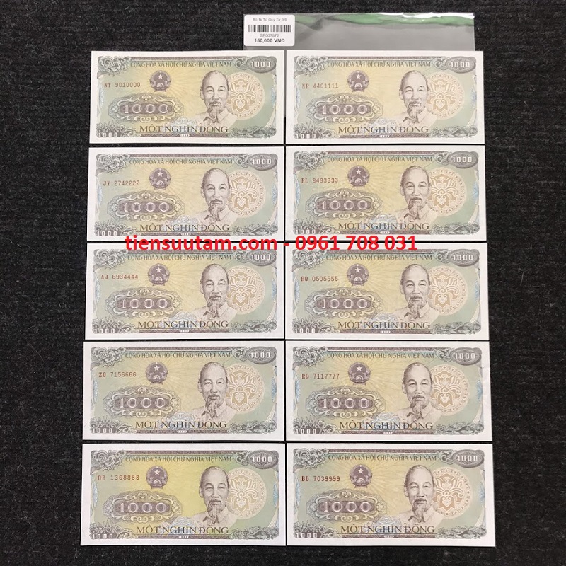 Tên sản phẩm: Bộ 10 Tờ 1K Tứ Quý từ 0000–9999 | Bộ 10 Tờ 1K Ngũ Quý từ 00000–99999