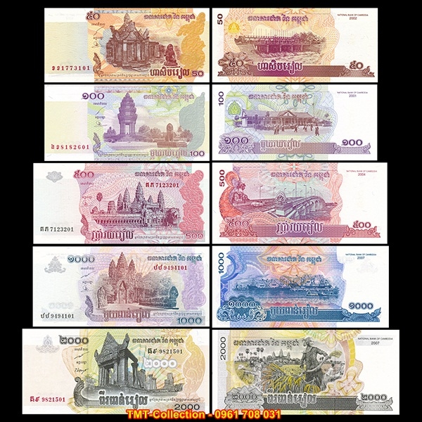 Mệnh giá: 50, 100, 500, 1000, 2000 Riels