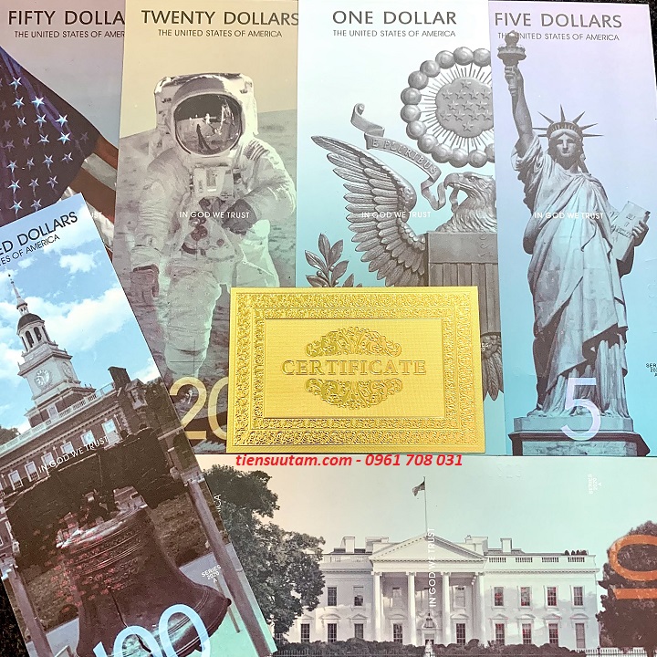 Đặc điểm nổi bật: Lưu Niệm Polyme Dạ Quang Của Mỹ được in ấn với các tông màu Pastel bắt mắt, Có thể hiện lên các hình dạ quang chìm độc đáo thú vị khi soi Bộ tiền dưới ánh sáng đèn UV. Ngoài ra bộ tiền còn được thiết kế tặng kèm giấy chứng nhận mạ vàng plastics làm tăng thêm giá trị của sản phẩm. Rất thích hợp làm quà tặng cho bạn bè , người thân với sự độc đáo lạ mắt và ý nghĩa phong phú. Tiền chỉ dùng để lưu niệm, không có giá trị sử dụng. Làm phong phú hơn cho bộ sưu tập của bạn và cũng là món quà tặng bạn bè người thân độc đáo và thú vị.