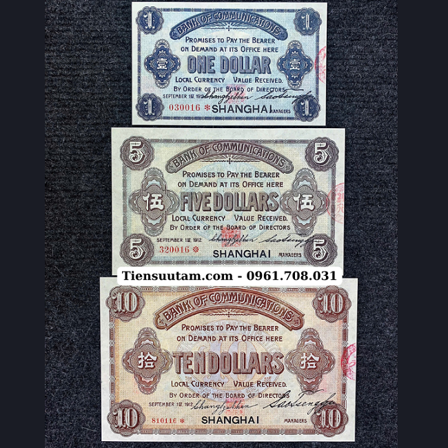 Bộ Lưu Niệm 3 Tờ Trung Quốc 1912 Thượng Hải - SP008055
