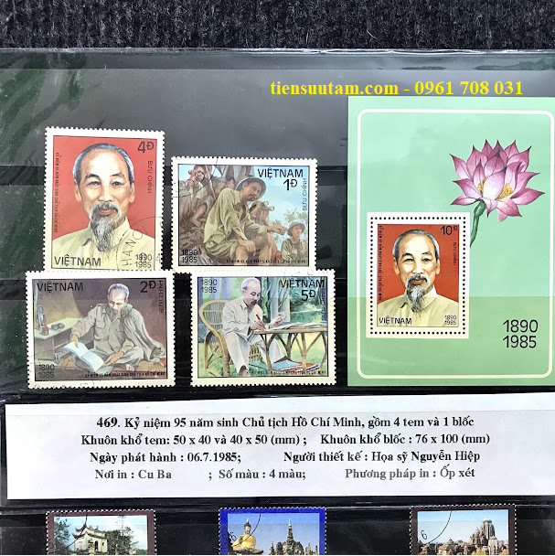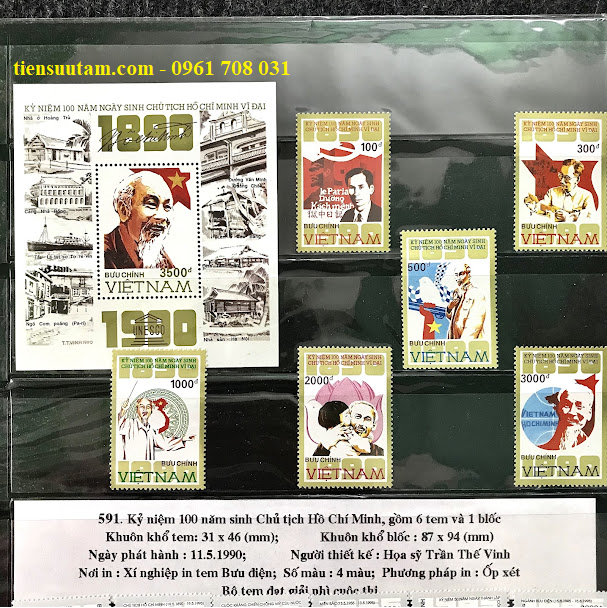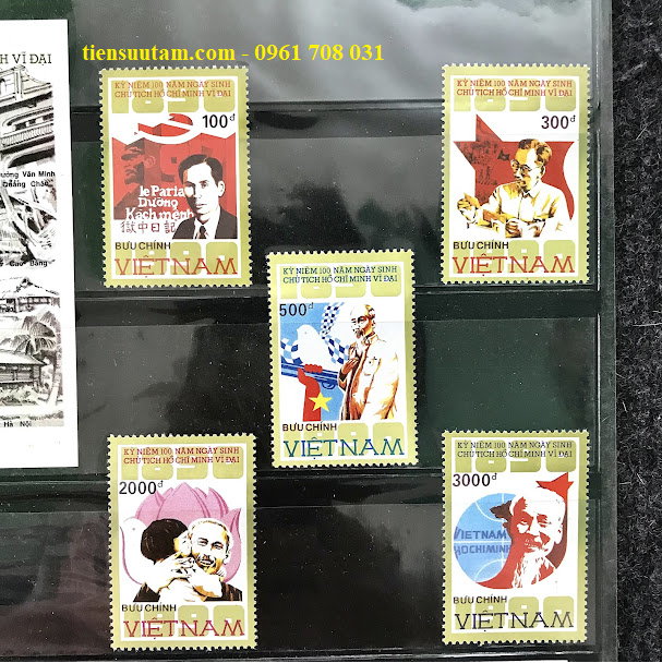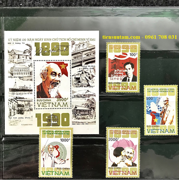 *Giới thiệu: Bộ tem đặc biệt này được phát hành vào ngày 11/5/1990 nhằm tưởng niệm 100 năm ngày sinh Chủ tịch Hồ Chí Minh (19/5/1890 – 19/5/1990) – vị lãnh tụ vĩ đại của dân tộc Việt Nam, người sáng lập và lãnh đạo Đảng Cộng sản Việt Nam, đã cống hiến trọn đời cho sự nghiệp cách mạng, độc lập và tự do của dân tộc
