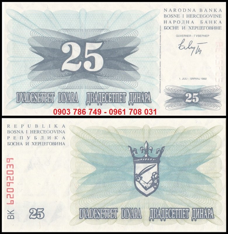 Tiền Bosnia 25 Dinara 1992