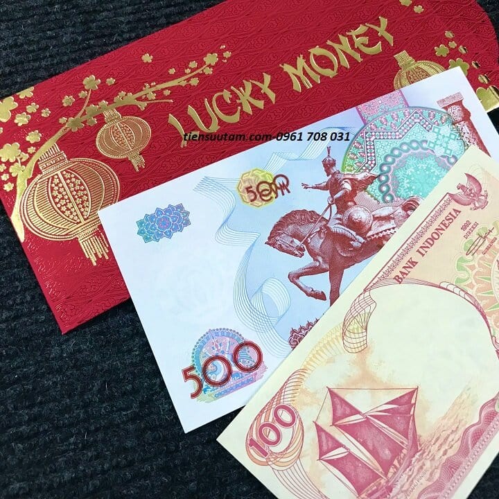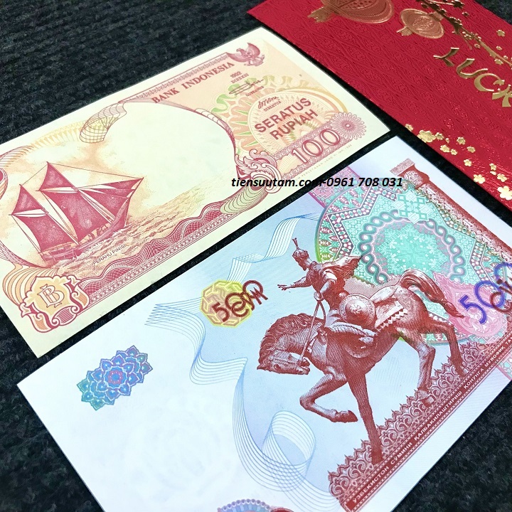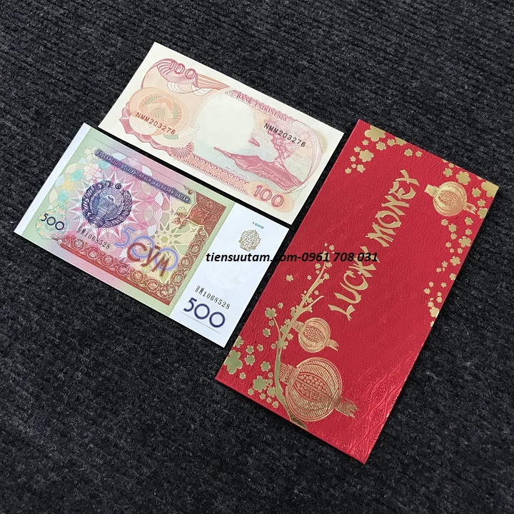 Đặc điểm nổi bật: Tiền thật 100%.Tờ Uzbekistan 500 Som tượng trưng cho câu chúc “ Mã Đáo Thành Công”. Tờ Indonesia 100 Rupiah Tượng Trưng cho câu chúc “ Thuận Buồm xuôi gió”.Là bộ tiền mang ý nghĩa cầu chúc Tài Lộc, Công danh thuận lợi, suôn sẻ và gặp nhiều may mắn. Rất thích hợp để làm quà tặng giá trị, độc đáo, ý nghĩa.