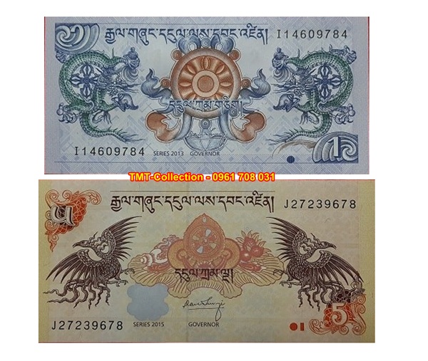 Mệnh giá : Bhutan 1 Ngultrum 2013 và Bhutan 5 Ngultrum 2011