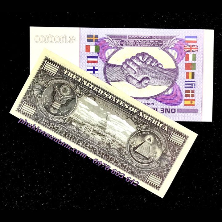 Mặt sau Cặp Tiền Lưu Niệm 1 Triệu USD Và Euro Dạ Quang