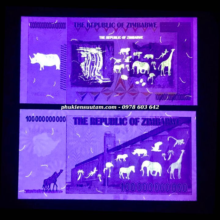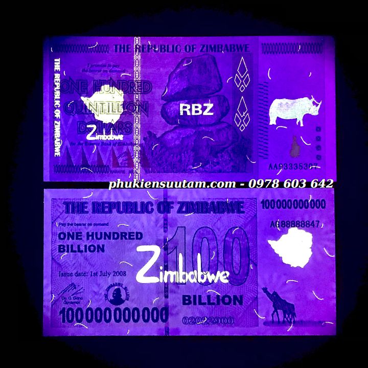 Hình dạ quang mặt sau của Cặp Tiền Tỷ Lưu Niệm Của Zimbabwe