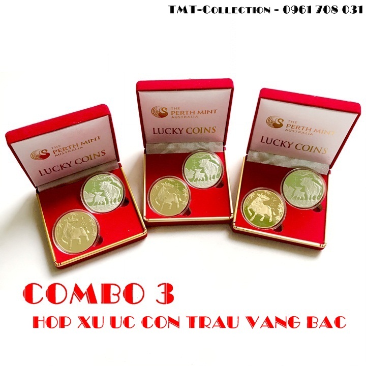 Cặp Xu Úc Hình Con Trâu Vàng Bạc Tặng Hộp Nhung - TMT Collection.com