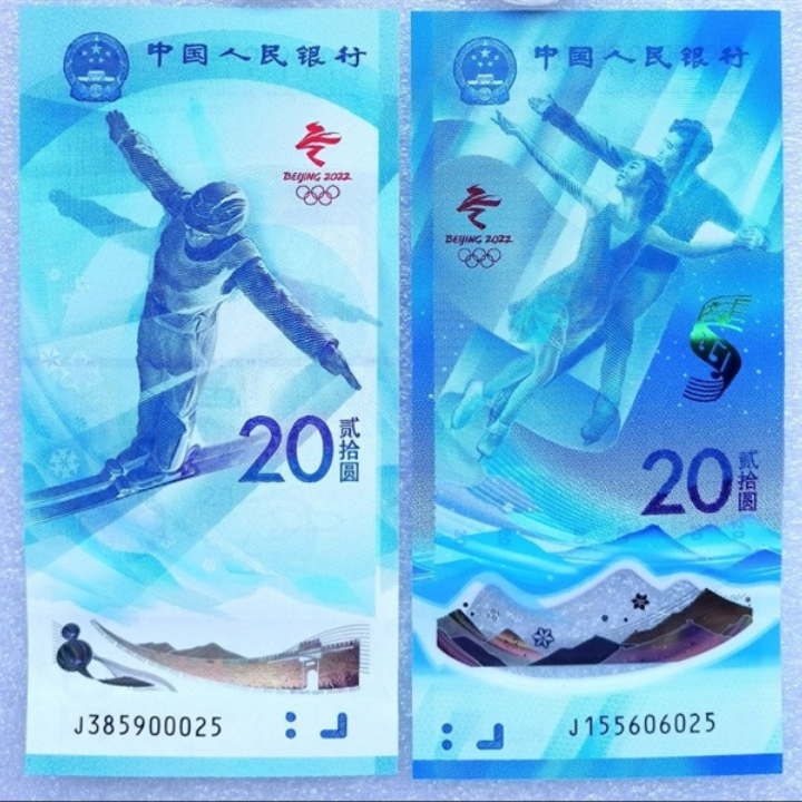China - Trung Quốc cặp 2 tờ 20 Yuan 2022 UNC Kỷ Niệm Thế Vận Hội Mùa Đông