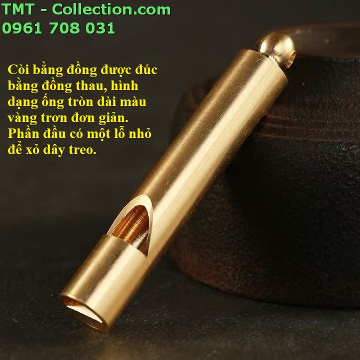Còi bằng đồng được đúc bằng đồng thau, tiếng thổi rõ ràng, vang xa. Còi nhỏ gọn, dễ dàng mang theo bên người.