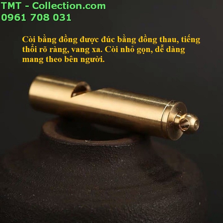 Đặc điểm nổi bật: Còi bằng đồng được đúc bằng đồng thau, tiếng thổi rõ ràng, vang xa. Còi nhỏ gọn, dễ dàng mang theo bên người.