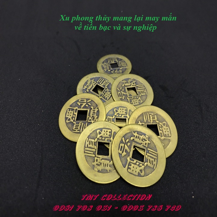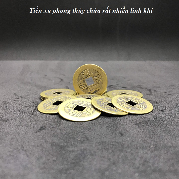 Mô tả sản phẩm: Combo 10 Xu phong thủy gồm 10 đồng xu phong thủy. Xu phong thủy có hình dạng là một đồng xu hình tròn tượng trưng cho trời, ở giữa đồng xu là 1 lỗ hình vuông tượng trưng cho đất. Trời ngoài đất trong tượng trưng cho quẻ Thái tức sự thịnh vượng.