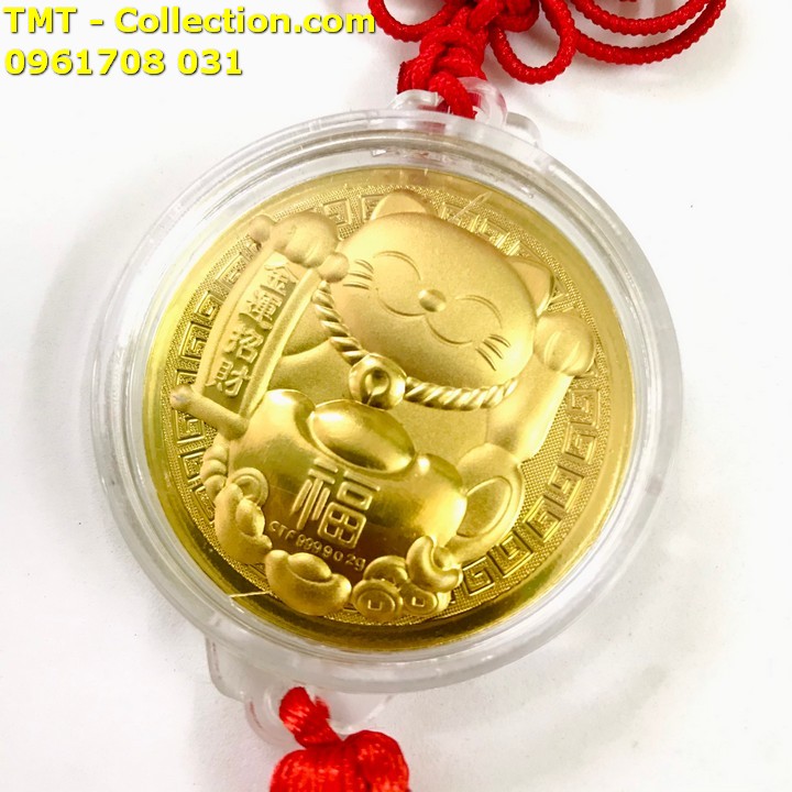 Dây treo đồng xu Mèo Thần Tài vàng may mắn - TMT Collection.com
