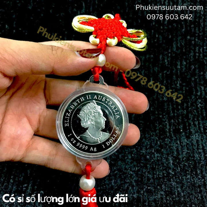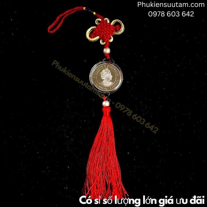 Mô tả sản phẩm: Dây Treo Ô Tô Xu Úc Hình Con Mèo Bạc là một sợi dây dệt màu đỏ hoặc vàng được kết nút như ý, ở giữa sợi dây treo một hộp nhựa trong suốt, bên trong có đồng xu, xu có mặt trước là hình ảnh 2 bé mèo đang vui chơi cùng nhau trong rừng trúc. Mặt sau là hình nữ hoàng Elizabeth II đầy hiền từ, cao quý. Hình ảnh trên đồng xu được in hình màu sắc nổi bật, bắt mắt.