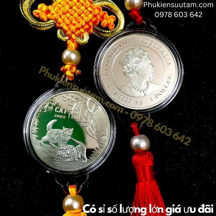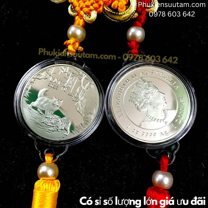 Đặc điểm nổi bật: Dây Treo Ô Tô Xu Úc Hình Con Mèo Bạc với chất liệu là sợi dây dệt kết nút như ý, hộp đựng xu bằng nhựa acrylic và xu bằng Niken. Mỗi chi tiết trên đồng xu đều được in hình rất tinh xảo, rõ nét. Mèo là loài vật thường gắn liền với hình ảnh thông minh, đáng yêu, duyên dáng, khéo léo...nên Dây Treo Ô Tô Xu Úc Hình Con Mèo Bạc sẽ phù hợp với những người có năm tuổi tương đồng, dùng để cầu thêm may mắn, được những đức tính tốt của linh vật. Đồng thời xu cũng thích hợp để làm quà dành tặng người thân và bạn bè rất ý nghĩa.