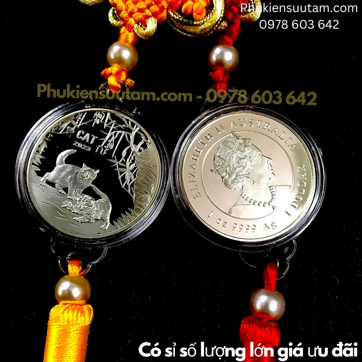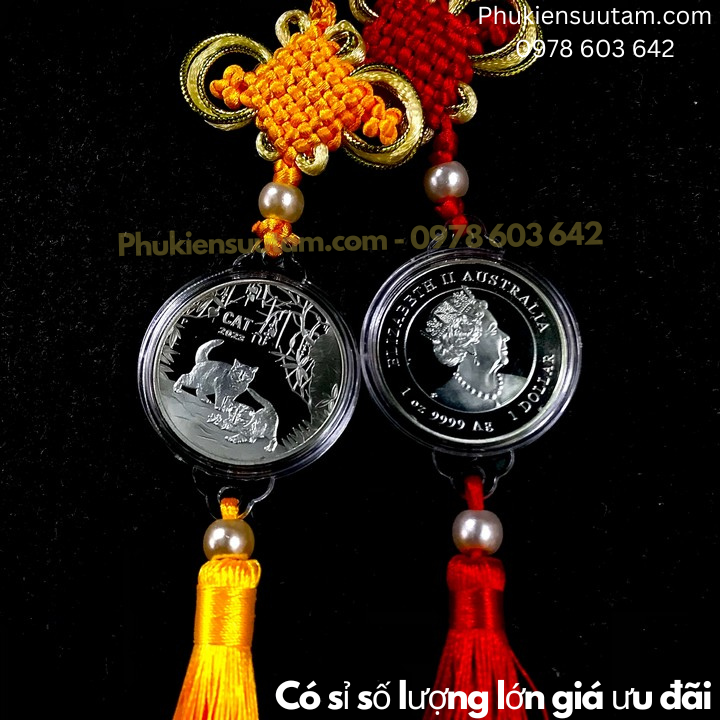 Tên sản phẩm: Dây Treo Ô Tô Xu Úc Hình Con Mèo Bạc