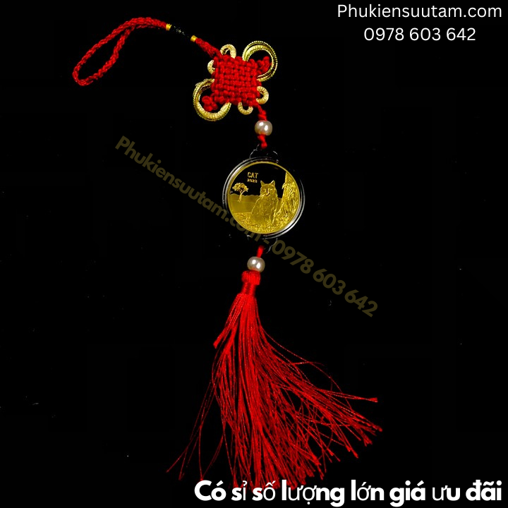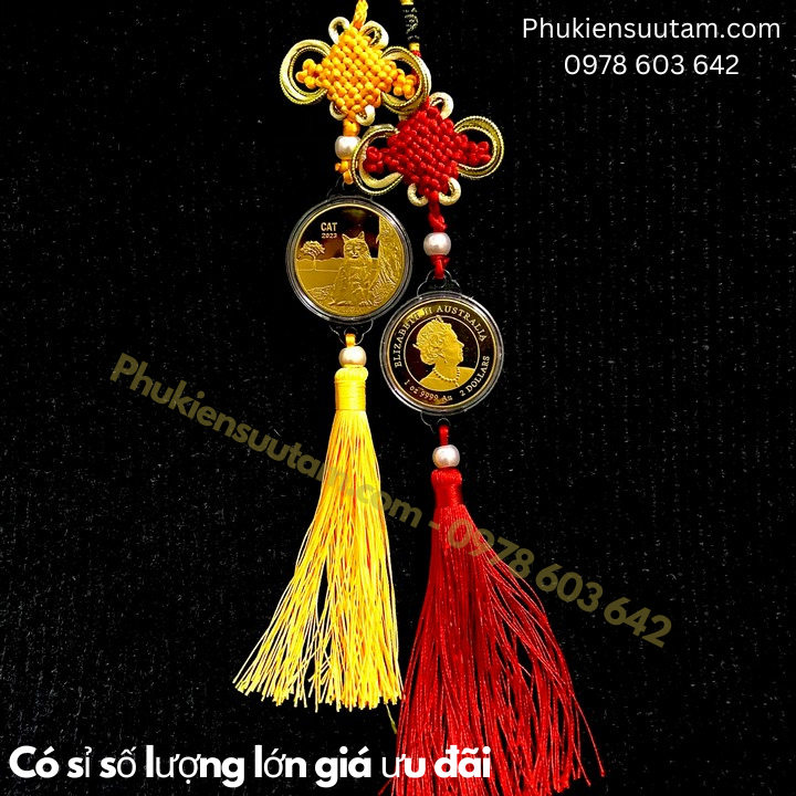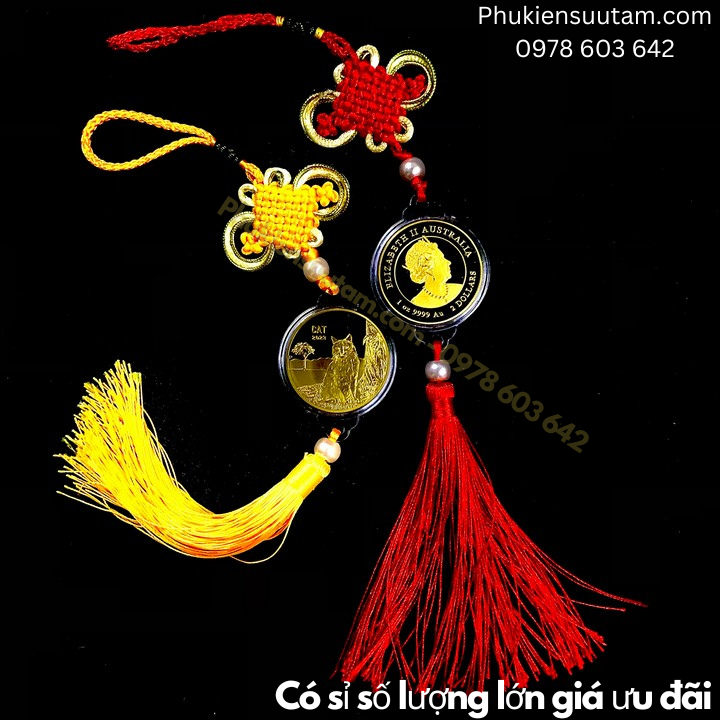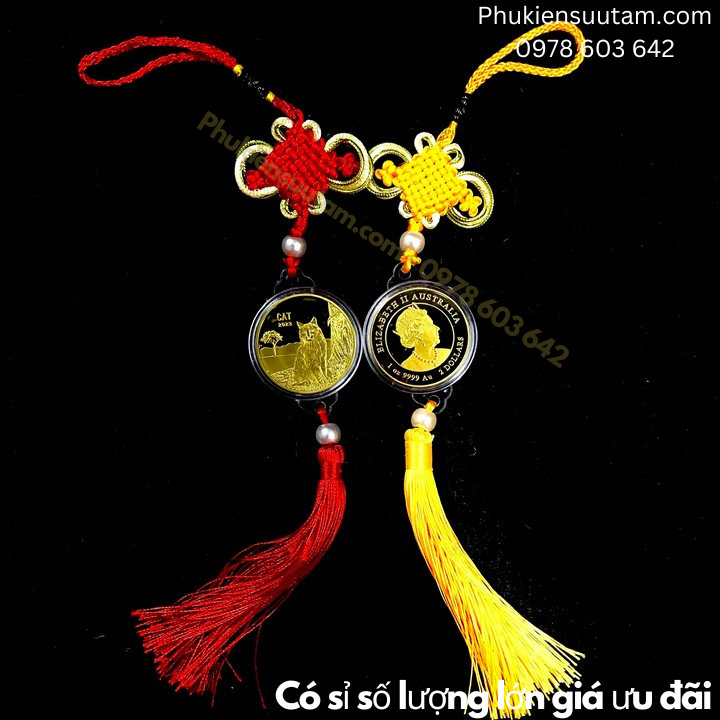 Mô tả sản phẩm: Dây Treo Ô Tô Xu Úc Hình Con Mèo Vàng là một sợi dây dệt màu đỏ hoặc vàng được kết nút như ý, ở giữa sợi dây treo một hộp nhựa trong suốt, bên trong có đồng xu, xu có mặt trước là hình ảnh bé Mèo với hình tượng duyên dáng cao quý. Mặt sau là hình nữ hoàng Elizabeth II đầy hiền từ, nhân hậu. Hình ảnh trên đồng xu được in hình màu sắc nổi bật, bắt mắt.