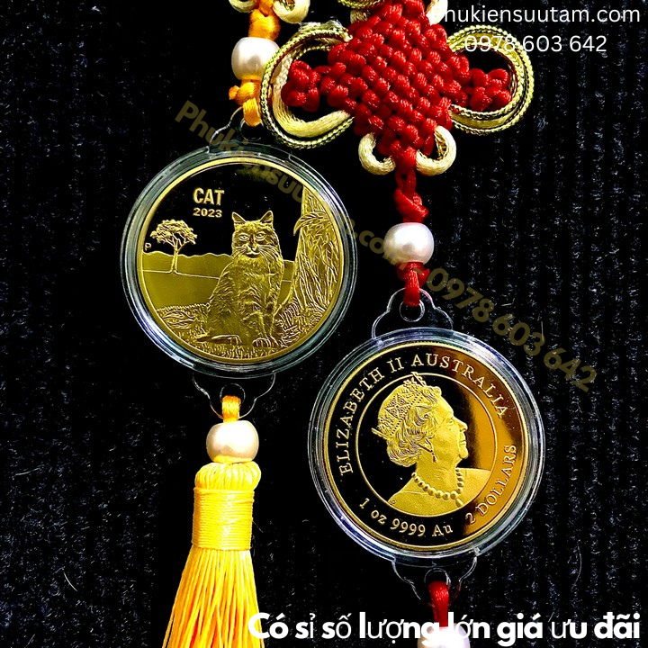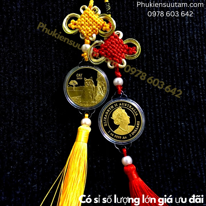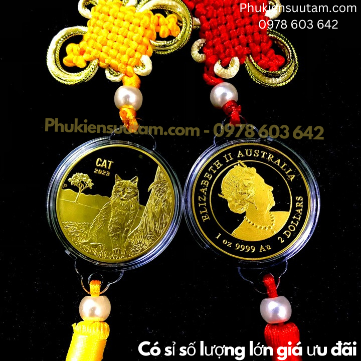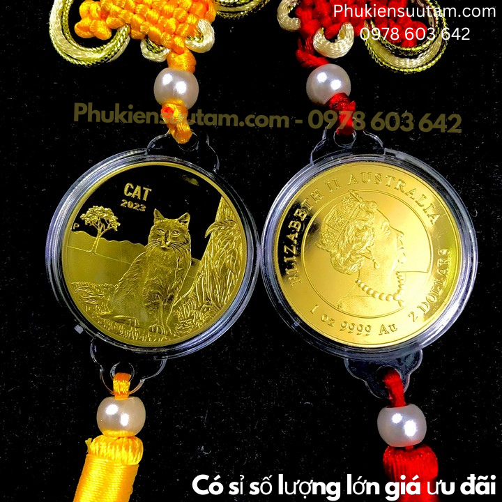 Đặc điểm nổi bật: Dây Treo Ô Tô Xu Úc Hình Con Mèo Vàng với chất liệu là sợi dây dệt kết nút như ý, hộp đựng xu bằng nhựa acrylic và xu bằng Niken. Mỗi chi tiết trên đồng xu đều được in hình rất tinh xảo, rõ nét. Mèo là loài vật thường gắn liền với hình ảnh thông minh, đáng yêu, duyên dáng, khéo léo...nên Dây Treo Ô Tô Xu Úc Hình Con Mèo Vàng sẽ phù hợp với những người có năm tuổi tương đồng, dùng để cầu thêm may mắn, được những đức tính tốt của linh vật. Đồng thời xu cũng thích hợp để làm quà dành tặng người thân và bạn bè rất ý nghĩa.
