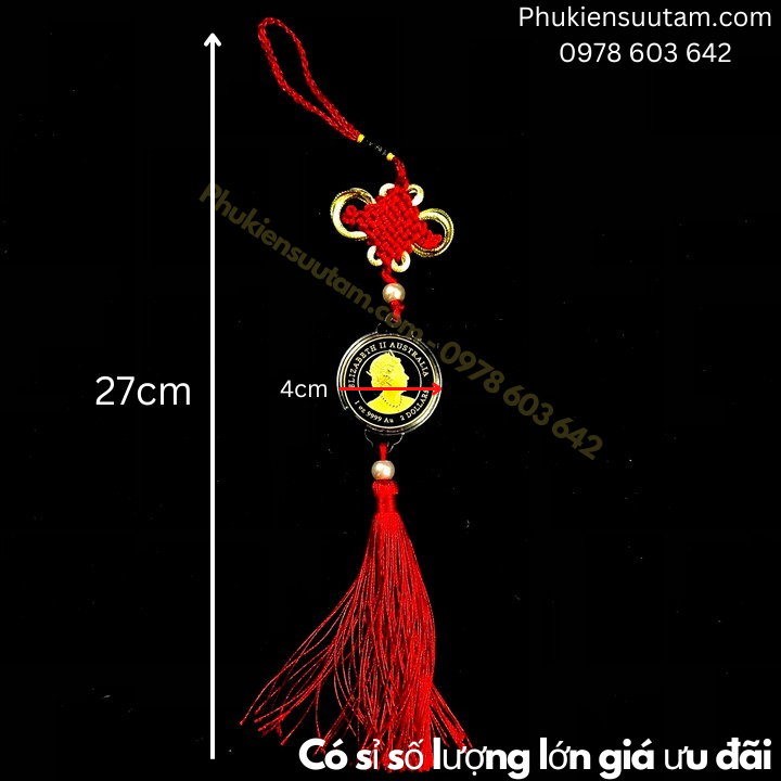 Kích thước: Đường kính đồng xu là 4cm. Dây treo như ý có kích thước 33 x 4.5cm (Dài x Rộng).
