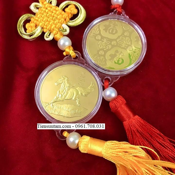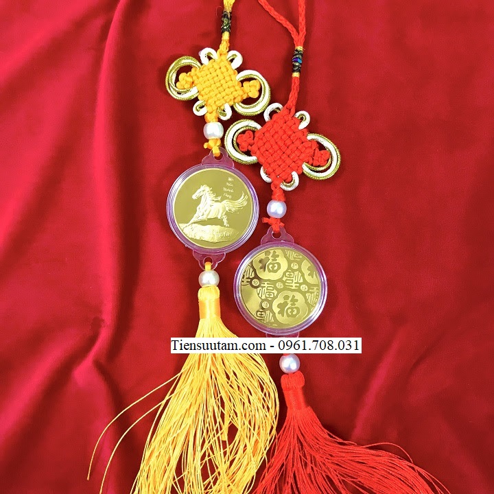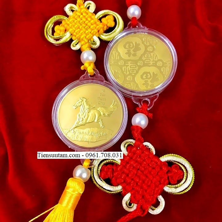 Mô tả sản phẩm: Dây treo phong thủy Hình Con Ngựa Mã Đáo Thành Công là một sợi dây dệt màu đỏ hoặc vàng được kết nút như ý, ở giữa sợi dây treo một hộp nhựa trong suốt, bên trong có đồng xu, với mặt trước được khắc hình chú Ngựa đang phi nước đại, phóng hết sức về phía trước. Mặt sau là những hình chữ " Phúc " bằng Hán tự. Hình ảnh trên đồng xu được chạm khắc nổi bật, bắt mắt.