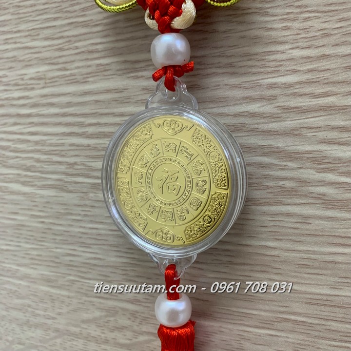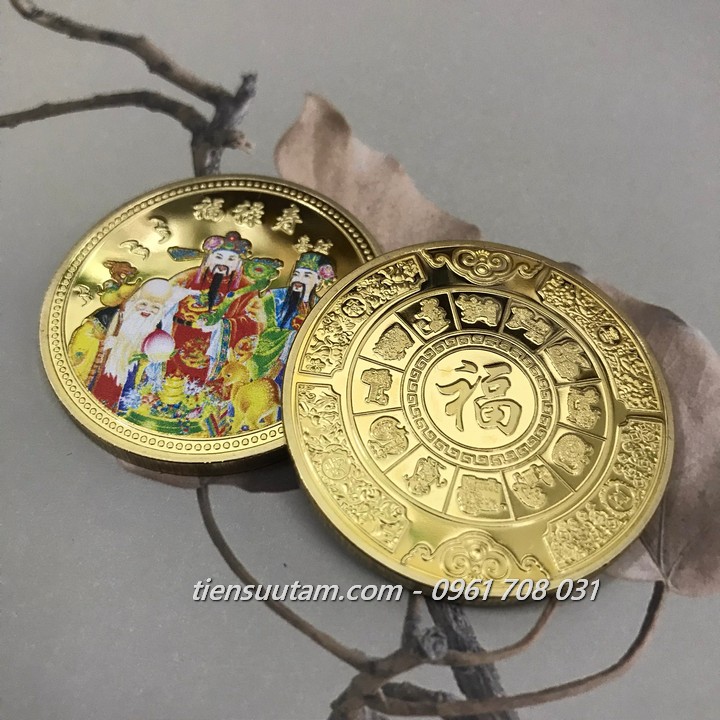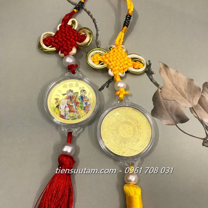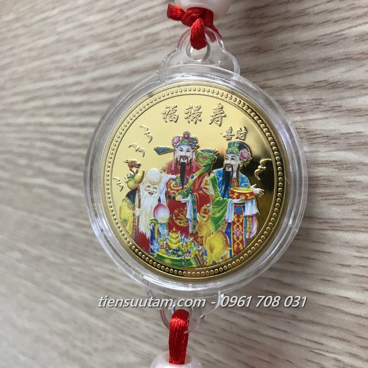 Mô tả sản phẩm: mặt trước: Dây Treo Phong Thuỷ Xu Phúc Lộc Thọ Mạ Vàng In Màu khắc 3 ông Phúc Lộc Thọ bằng màu sắc bắt mắt, độc đáo, mặt sau: Dây Treo Phong Thuỷ Xu Phúc Lộc Thọ Mạ Vàng In Màu khắc chữ Phúc bằng tiếng Hoa, có vòng 12 con giáp