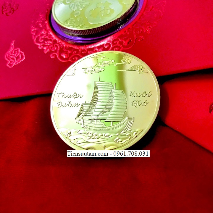 Mô tả sản phẩm: Dây Treo Xu May Mắn Thuận Buồm Xuôi Gió là một sợi dây dệt màu đỏ hoặc vàng được kết nút như ý, ở giữa sợi dây treo một hộp nhựa trong suốt, bên trong có đồng xu, với mặt trước được khắc hình chiếc thuyền với những cánh buồm đang căng gió lướt trên mặt biển, phóng hết sức về phía trước, vươn mình ra khơi.Bên trái là dòng chữ mang ý nghĩa " thuận buồm xuôi gió " . Phía trên là những đường nét khắc nổi tạo hình đám mây và bầu trời sống động. Mặt sau là những hình chữ " Phúc " bằng Hán tự. Hình ảnh trên đồng xu được chạm khắc nổi bật, bắt mắt.
