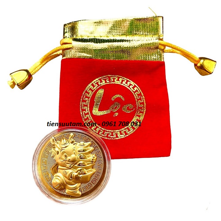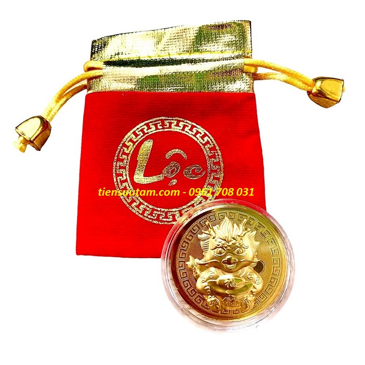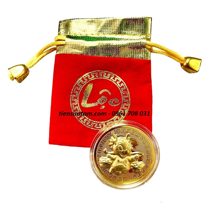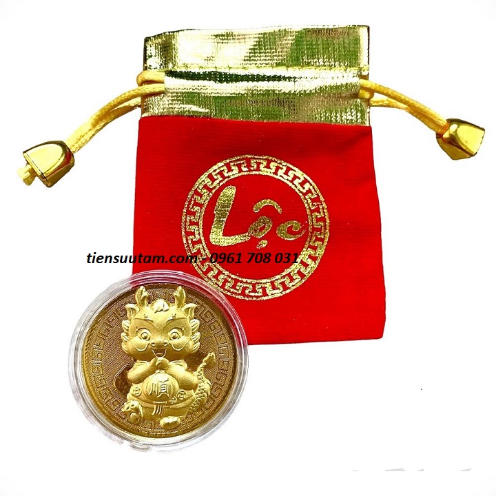 Đồng Xu Con Rồng Cute Tặng Túi Gấm Lộc