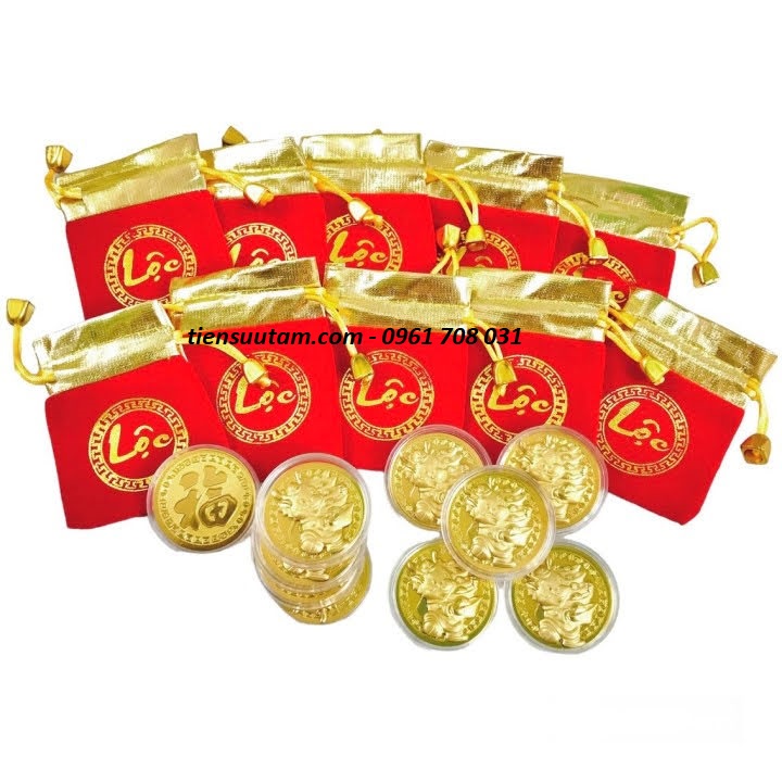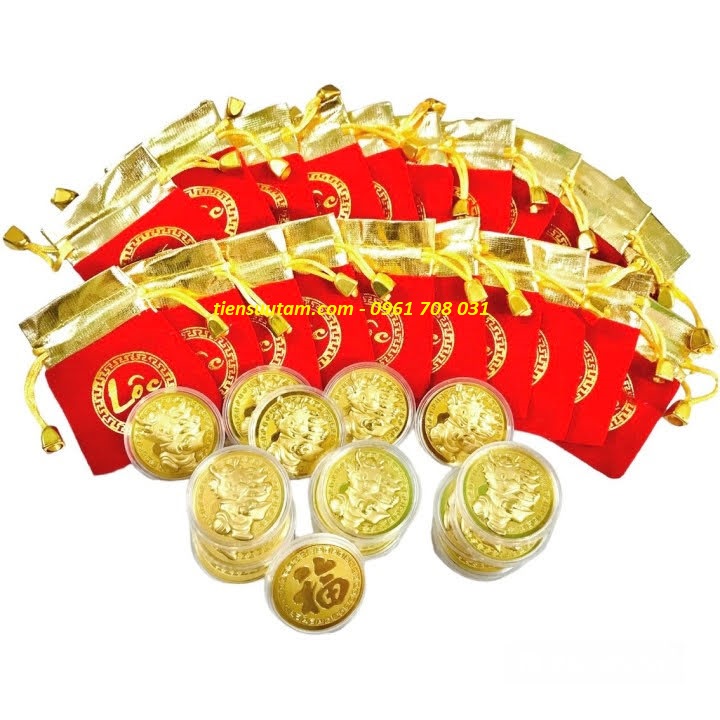 Đồng Xu Hình Con Rồng CUTE Tặng Túi Gấm Lộc