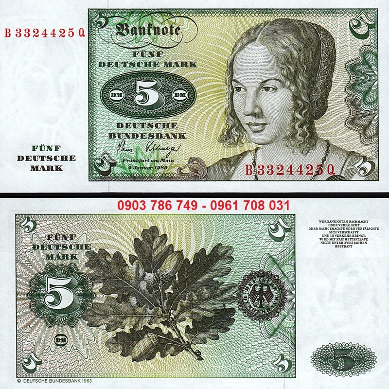 Tờ tiền sưu tầm Đức 5 Deutsche Mark là một trong những tờ tiền nổi tiếng của Tây Đức (West Germany) trước khi nước Đức thống nhất và trước khi Đức chuyển sang sử dụng đồng Euro.