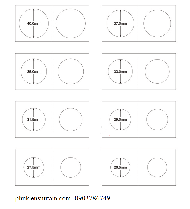 Holder kẹp xu có nhiều kích thước lỗ khác nhau tương ứng với các loại xu có kích thước lớn nhỏ. Holder kẹp xu PCCB được sử đựng phổ biến vì giúp bảo quản tiền xu tốt nhất, làm bộ sưu tập của bạn đẹp hơn. Có thể ghi thông tin của đồng xu trên Holder giúp nhận biết được xu sản xuất năm nào, của nước nào, mệnh giá bao nhiêu