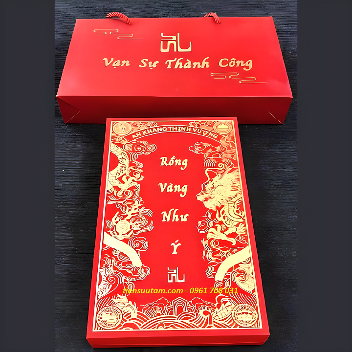 Đóng gói Sản Phẩm: 1 x Hộp Quà Tết Rồng Vàng Như Ý 999