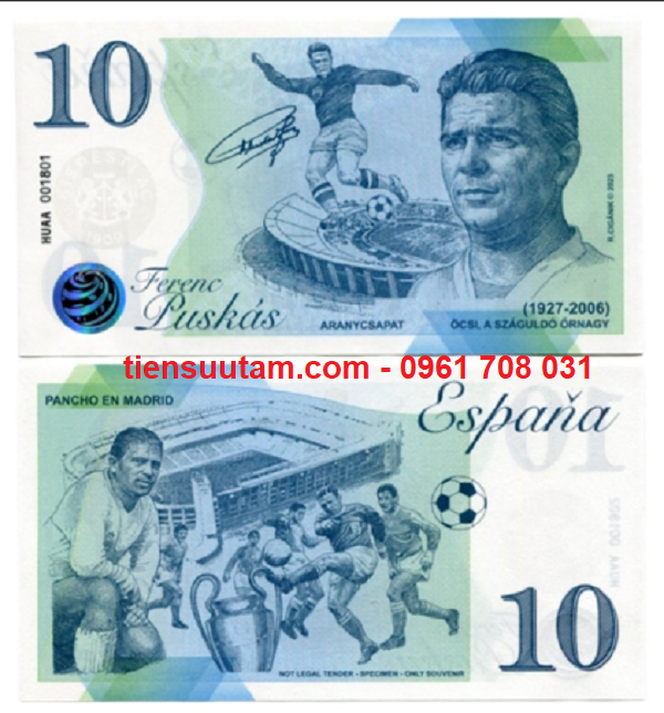 Tiền Hungary 10 Kỷ Niệm Ngôi Sao Bóng Đá Ferenc Puskás 2023 UNC