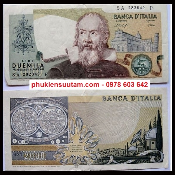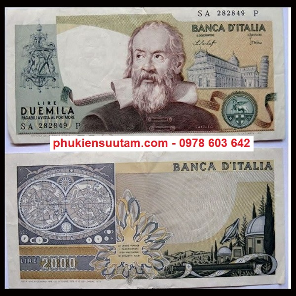 Italia 2000 lira Galileo 1973 Cũ (tờ) - phukiensuutam.com