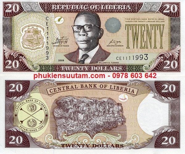 Tiền Liberia 20 Dollar 2003 UNC