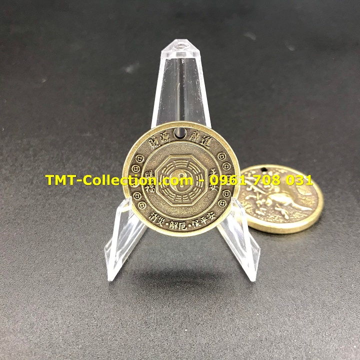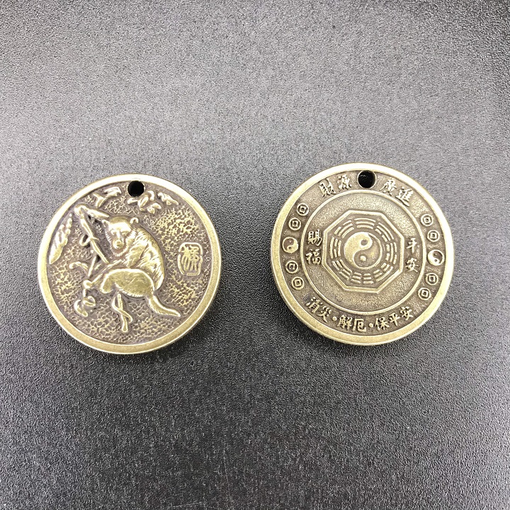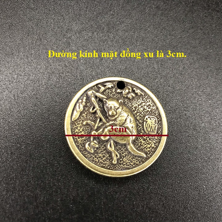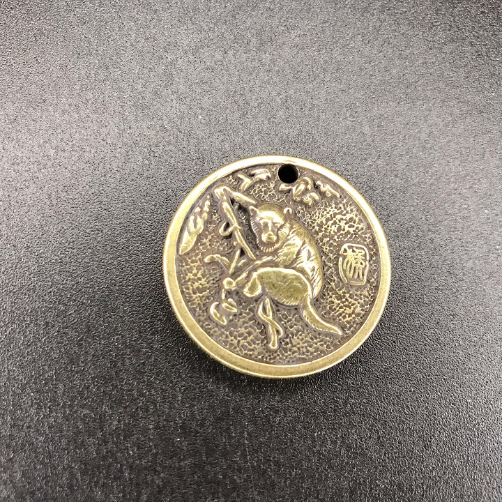 Mô tả sản phẩm: Mặt Đồng Xu Đồng Hình Con Khỉ là một mặt đồng xu bằng đồng, với mặt trước là hình con Khỉ, mặt sau là hình bát quái cùng các chữ tiếng Trung. Trên đồng xu cũng đã được khoét một lỗ nhỏ để có thể xỏ móc khóa vào hoặc luồn dây để đeo.
