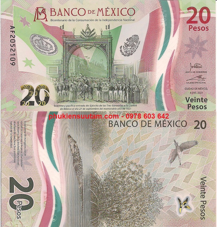 Tiền Mexico 20 Pesos 2021 UNC Polymer Kỷ Niệm Độc Lập