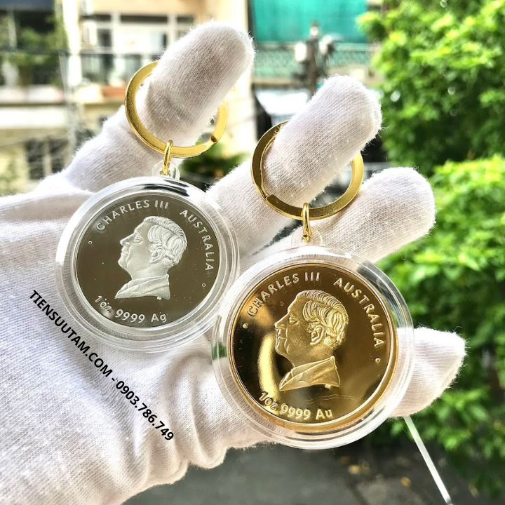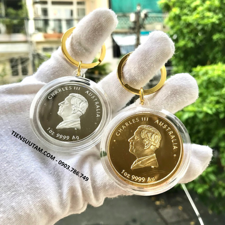 Móc Khóa Cặp Xu Úc Hình Con Ngựa Mạ Vàng Bạc 2026
