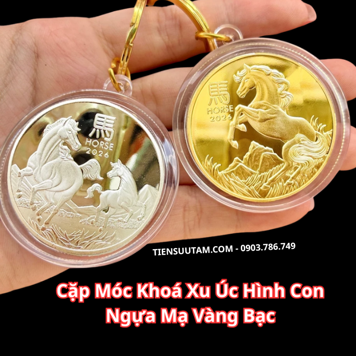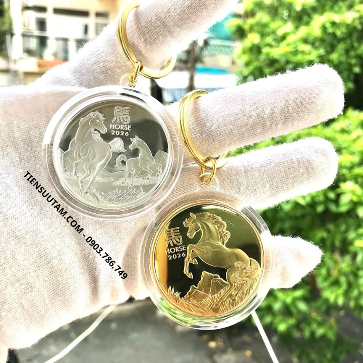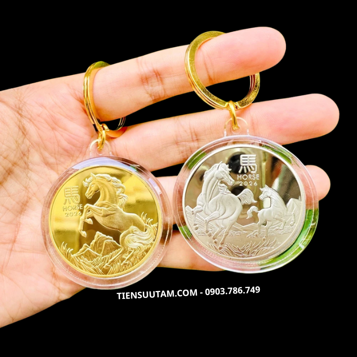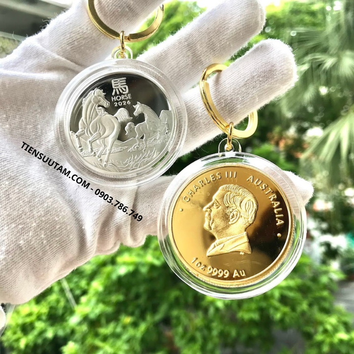 Tên sản phẩm: Móc Khóa Cặp Xu Úc Hình Con Ngựa Mạ Vàng Bạc 2026