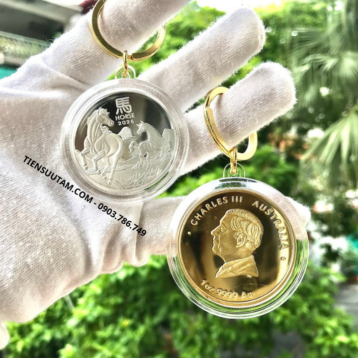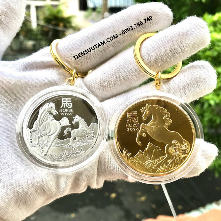 Móc Khóa Cặp Xu Úc Hình Con Ngựa Mạ Vàng Bạc 2026 là vật phẩm phong thủy nhỏ gọn nhưng mang năng lượng mạnh mẽ, kết hợp giữa tính tiện dụng và ý nghĩa may mắn – thịnh vượng.