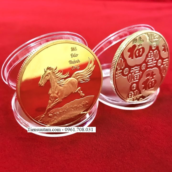 Mô tả sản phẩm: Móc Khóa Xu Hình Con Ngựa Mã Đáo Thành Công có hộp móc khóa bên ngoài bằng nhựa acrylic cứng cáp, bền chắc. Đồng xu bên trong được làm bằng Niken mạ vàng và bạc, xu vàng với mặt trước được khắc hình chú Ngựa đang phi nước đại, phóng hết sức về phía trước. Mặt sau là những hình chữ " Phúc " bằng Hán tự. Xu được in hình màu và khắc họa các chi tiết rất rõ nét, tinh xảo.