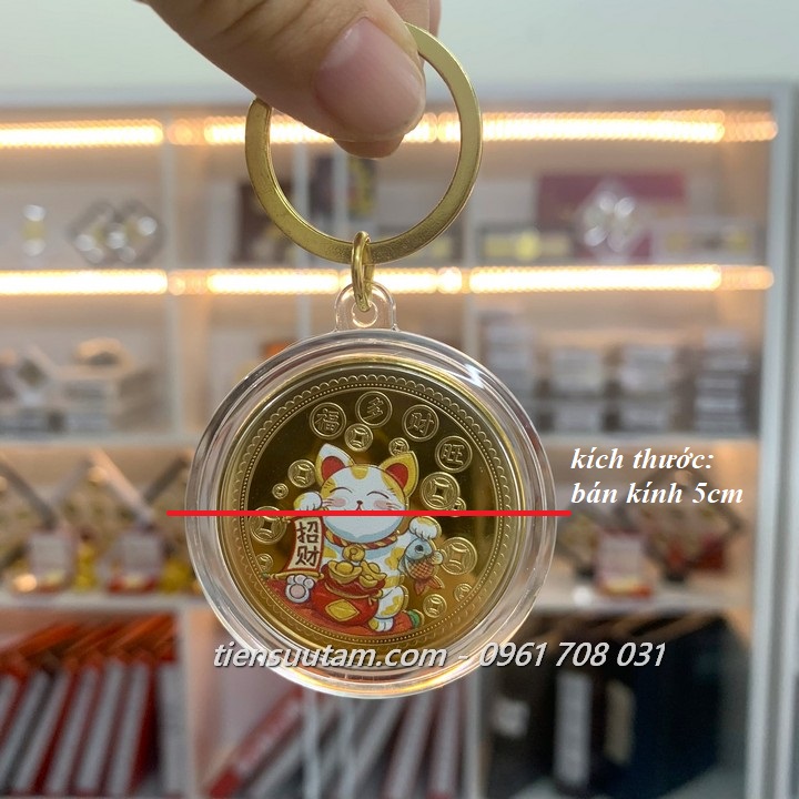 Kích Thước Móc Khoá Xu Lưu Niệm Mèo Thần Tài Mạ Vàng In Màu