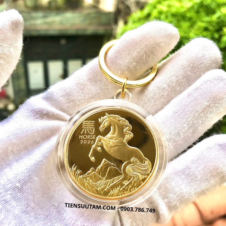 Tên sản phẩm: Móc Khóa Xu Úc Hình Con Ngựa Mạ Vàng 2026