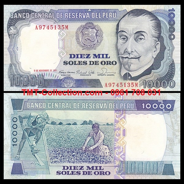 Mặt trước: Bên phải có chân dung nhà sử học gốc Tây Ban Nha Inca Garcilaso de la Vega(1539-1616). Ở giữa là quốc huy Peru.