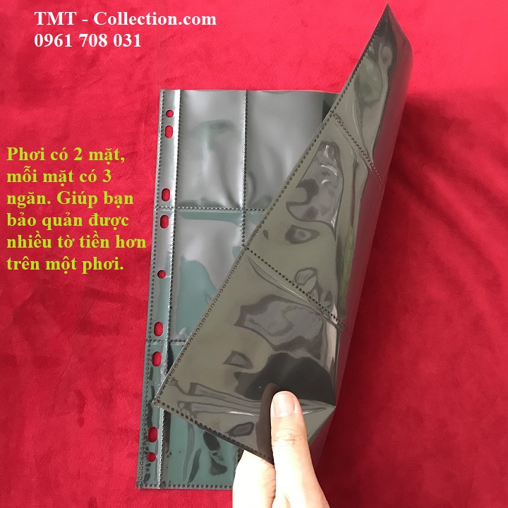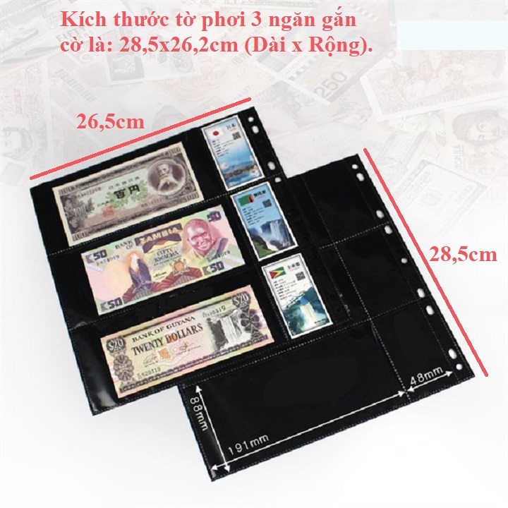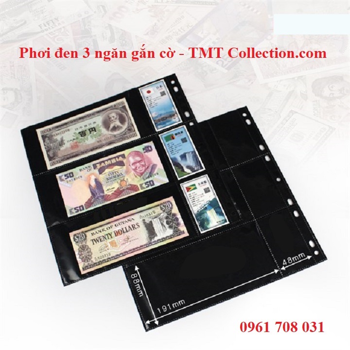 Mô tả sản phẩm: Phơi đen 3 ngăn gắn cờ được làm từ chất liệu nhựa tổng hợp, dẻo dai và bền chắc. Phơi màu đen, có 3 ngăn ở mỗi mặt, đặc biệt hơn là bên cạnh mỗi ngăn đựng tiền đều sẽ có một ngăn nhỏ dùng để chứa cờ của mỗi quốc gia hoặc Chú thích. Giúp những người sưu tầm tiền các nước hiểu rõ hơn về bộ sưu tập của mình.