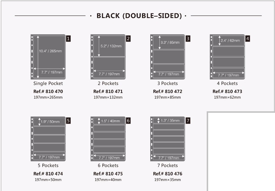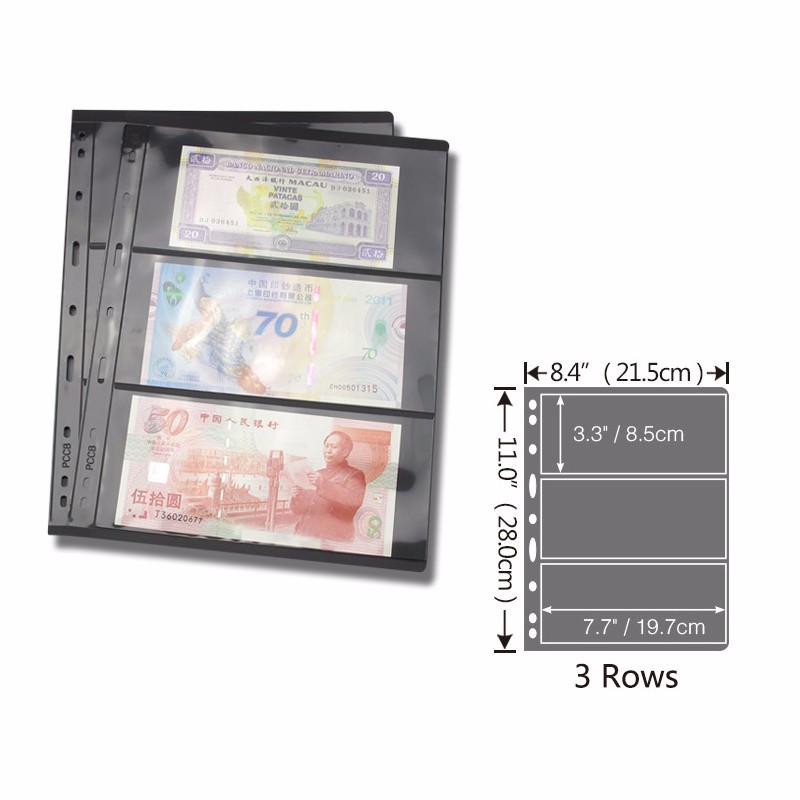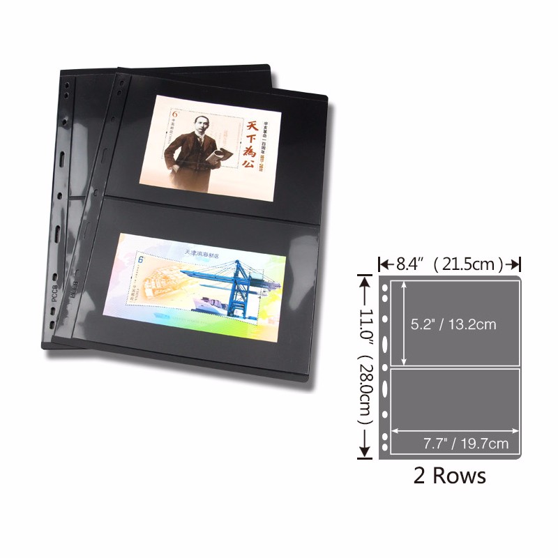 Phơi đựng tiền tem ngăn đen của PCCB 9 lỗ có thể gắn vừa hầu hết các loại album từ 2 còng, 3 còng, 4 còng. Được làm bằng nhựa dẻo tổng hợp bền chắc trong suốt thấy rõ tờ tem tiền bên trong.
