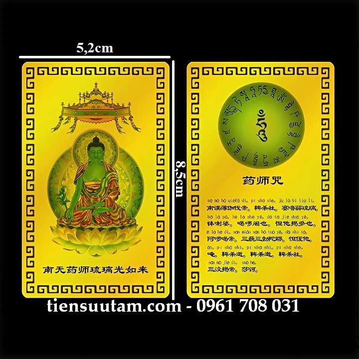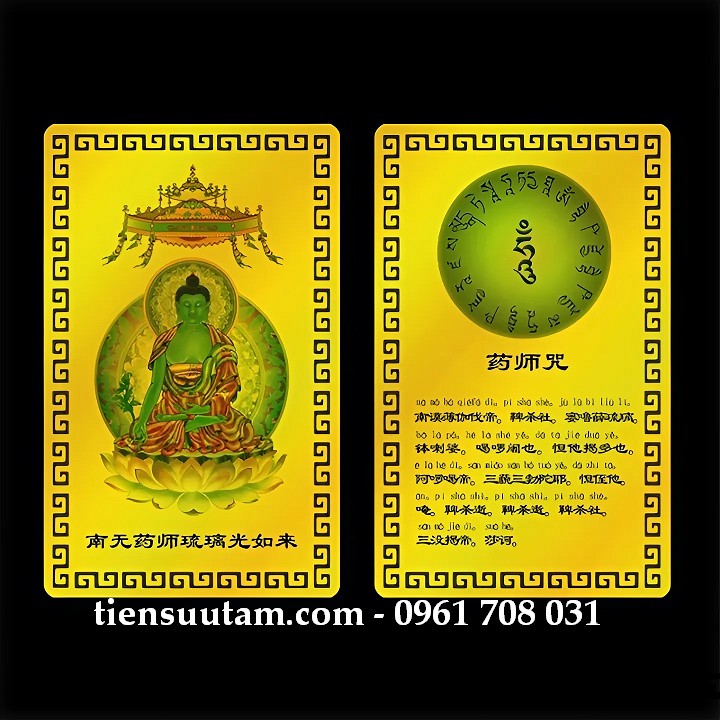 Đóng gói Sản Phẩm gồm : 1x Thẻ Kim Bài Phật Dược Sư Lưu Ly Quang Như Lai