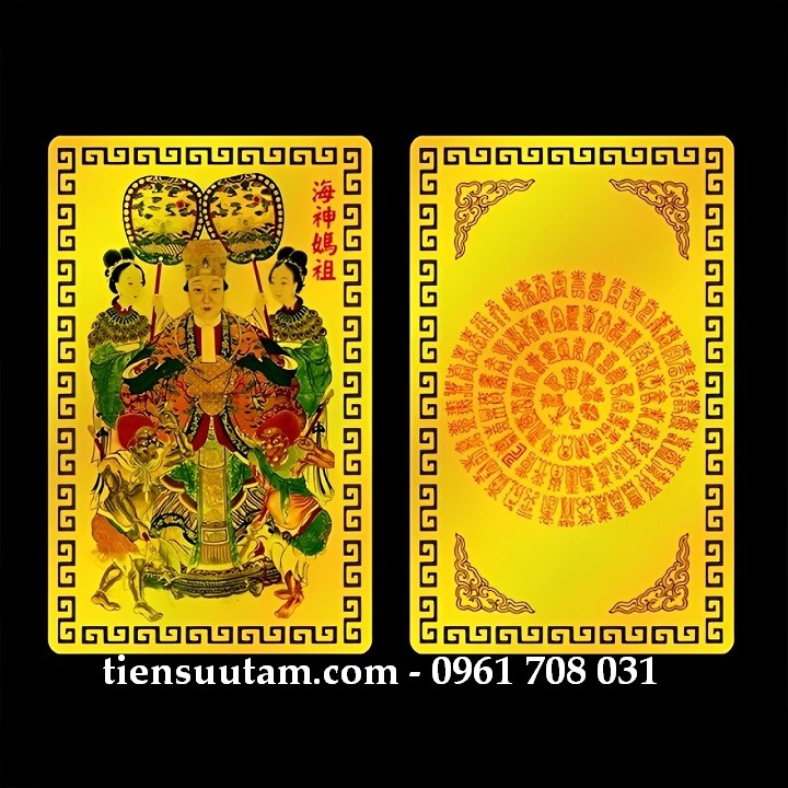 Công dụng: Thẻ Kim Bài Thiên Hậu Thánh Mẫu Đạo Giáo Dùng để trong ốp lưng điện thoại, để nơi làm việc, trong xe hơi, bàn thờ ông địa,... có thể dùng làm quà tặng cho bạn bè người thân, là món quà mang nhiều ý nghĩa